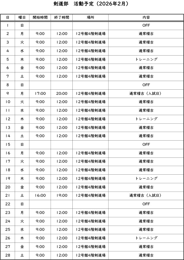 活動予定 2026年2月