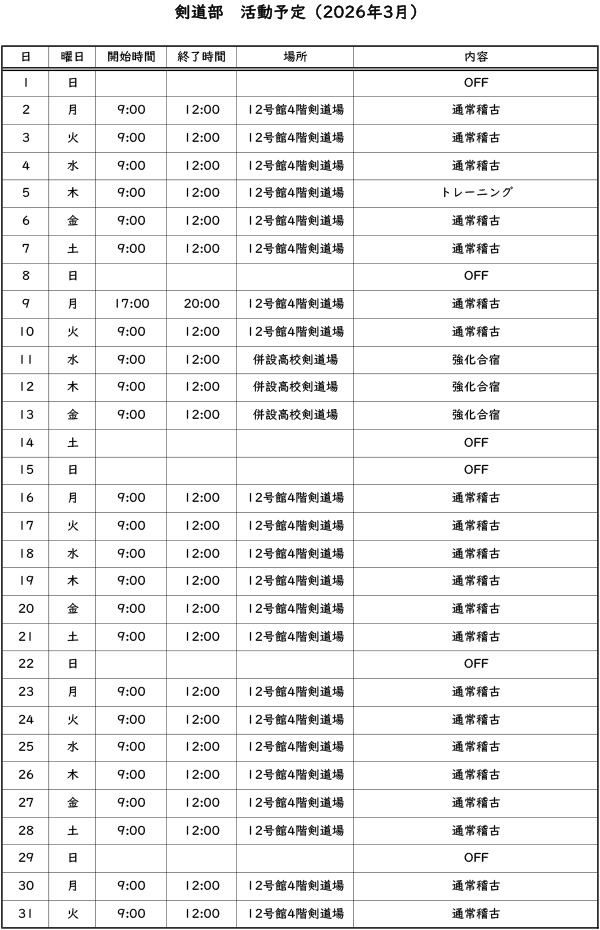 活動予定 2026年3月