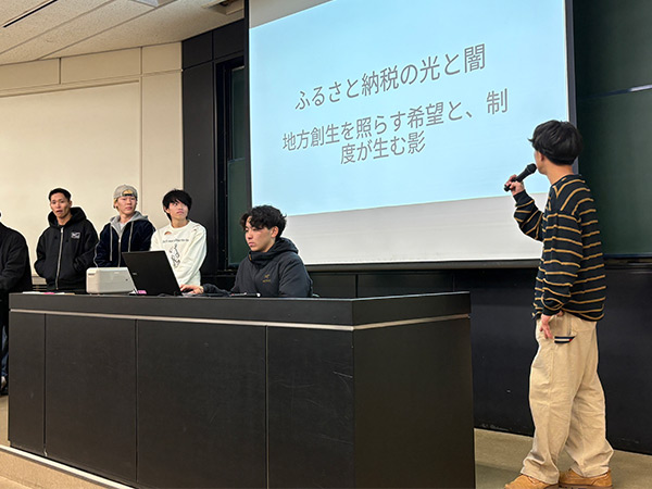 2025年11月29日(土)、本学において弘前大学 金目哲郎先生、明治学院大学 高松慶裕先生、広島修道大学 河合伸治先生の各ゼミをお招きし、財政学を研究テーマとした合同ゼミが開催されました。