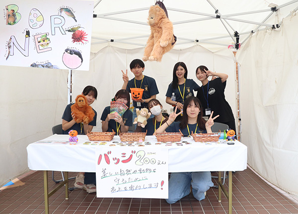第64回岸辺祭〔2025年10月18日(土)、19日(日)〕では、ボルネオ島の森を守るための募金活動として、缶バッジを販売しました。売上金と募金の合計は23,600円に上り、全額を認定NPO法人ボルネオ保全トラスト・ジャパン(BCTJ)に寄付しました。BCTJは世界有数の豊かな生態系を有するボルネオ島で、熱帯雨林保護・生態系保全活動を行い、動物と人間が共に生きていくことのできる環境づくりを目標としています。この活動によりボルネオ島について深く考える機会となりました。