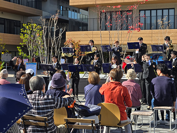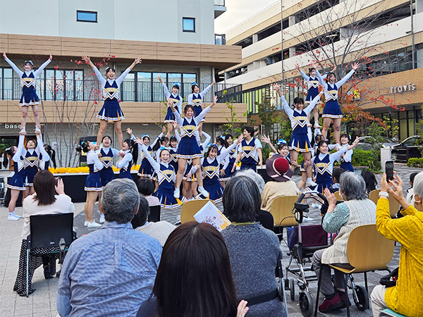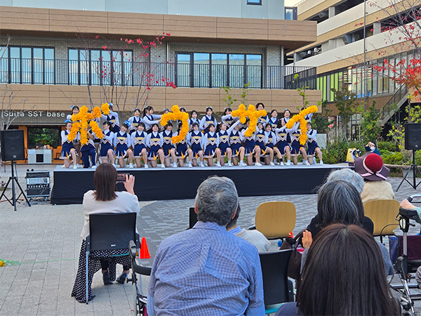 Suita SST 防災・文化フェスタに本学学生が協力しました 2026年01月22日 JR岸辺駅北側に位置するSuita SSTにて開催された防災・文化フェスタに、吹奏楽部、アカペラサークル、チアリーダー部が出演しました。〔2025年11月15日(土)〕 防災への関心を高めることを目的としたこのイベントには、Suita SSTの居住者の皆様をはじめ、多くの近隣住民の方々が集まりました。各団体によるパフォーマンスで会場を盛り上げるとともに、大学生ならではの活気とともに、防災の大切さを地域の皆様にお届けしました。