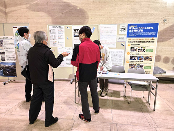 本学ブースでは、学生が授業の一環として取り組んだ、学内のごみ問題に関する学習内容として、大学として循環型社会の構築を推進するための取り組みや学生をはじめとする本学のすべての構成員一人ひとりが実践できる行動について紹介しました。また本学が進めている、なにわの伝統野菜「吹田くわい」の保護・普及活動を紹介し、地域資源の継承や地産地消の推進といった観点から取り組みを発信することで、来場者のSDGsへの理解促進に貢献しました。