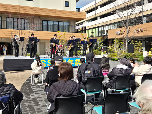 SuitaSST 4周年祭に本学学生が協力しました 2026年04月14日 JR岸辺駅北側に位置するSuita SSTの4周年祭に、ボランティア部と吹奏楽部が協力しました。〔2026年3月7日(土)〕 オープニングでは、吹奏楽部による華やかな演奏を披露し、来場者を魅了しました。また、ボランティア部は、運営を手伝いながら子どもたちと交流を行い、賑やかなひとときとなりました。