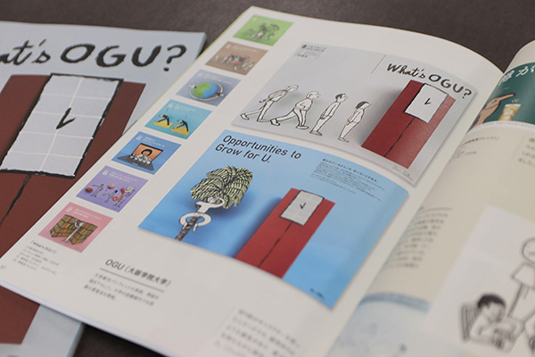 誌面では本学の大学案内のほか、世界中の企業などとコラボした作品が掲載されています。