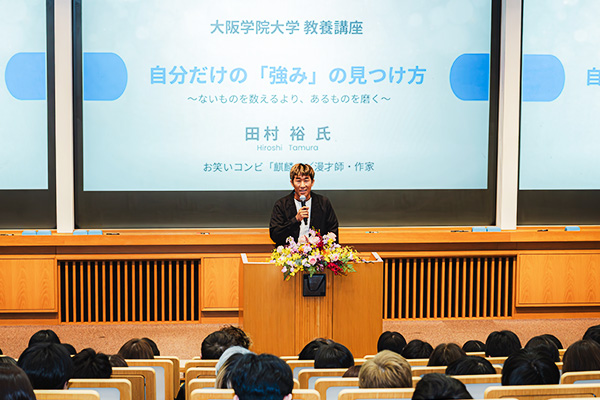 お笑いコンビ「麒麟」の田村裕氏を講師に迎え、教養講座「自分だけの『強み』の見つけ方 ~ないものを数えるより、あるものを磨く~」を開催しました。〔1月20日(火)〕