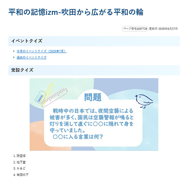 平和クイズ「平和の記憶izm-吹田から広がる平和の輪」
