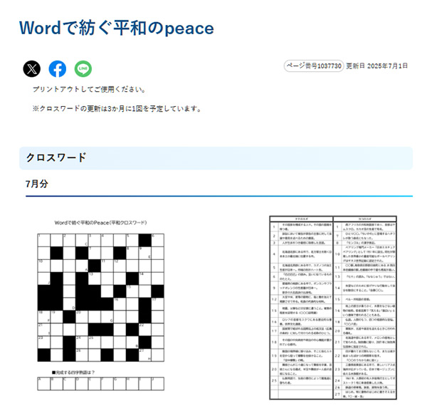 クロスワードパズル「Wordで紡ぐ平和のpeace」