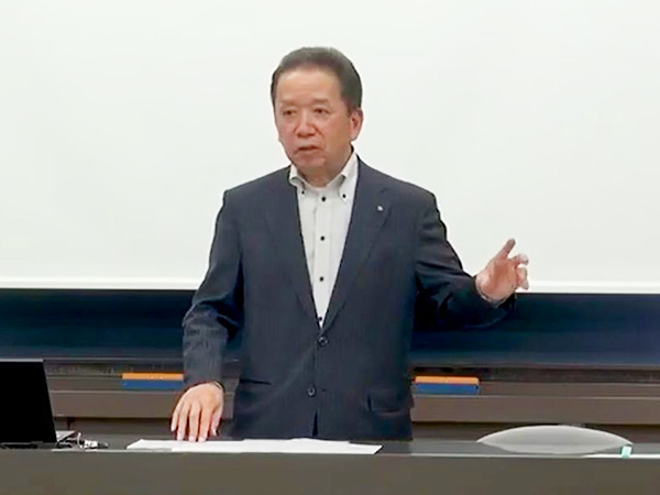2025年度後期開講の「キャリアデザイン入門Ⅰ」産学連携PBLクラスでは、ジャーナリストの畑山氏、株式会社シンエーフーヅ 代表取締役社長の宮内氏より課題提示が行われた〔2025年10月27日(月)〕。
