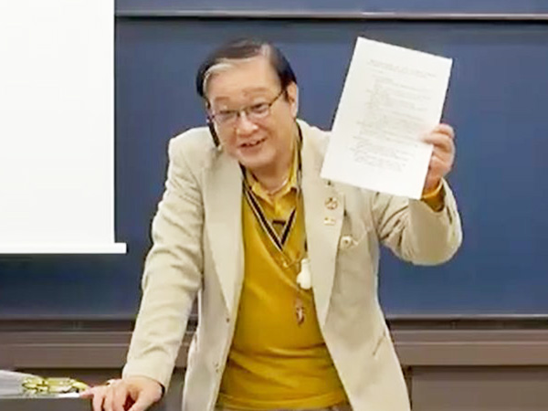 畑山氏からは、「大阪学院大学発 自転車青切符への安全行動啓発活動」をテーマとする課題が提示された。事前学習として、畑山氏が出演された番組『ブラマヨ弾話室 ニッポンどうかしてるぜ』を視聴し、今回の課題テーマである「自転車の交通ルール違反」について理解を深めた。自転車の交通違反に対して、車やオートバイと同様に反則金の納付を通告する、いわゆる「青切符」による取り締まりが2026年4月1日から開始される。たとえば「ながらスマホ運転」は反則金が科される想定であり、飲酒運転などの危険行為も厳しく取り締まられる。畑山氏からの課題は、「この新しいルールを、どのように周知すればよいか」である。自転車は免許がなくても利用できるため、交通法規の理解が十分でない利用者も多い。学生・社会人・高齢者など、すべての自転車利用者に新ルールを理解してもらい、適切な行動につなげることが求められる。また、社会に出れば、アイデアを他者に伝えるスキルは重要である。ぜひこの講義を通じて、プレゼンテーションスキルに磨きをかけてほしい。