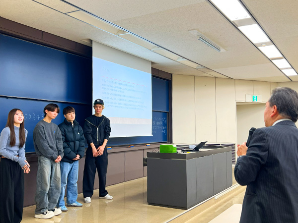 受講生による課題解決発表会が開催された。受講生は4グループに分かれ、それぞれが選択したテーマについて成果発表を行った〔2025年12月8日(月)〕。