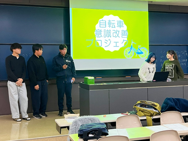 自転車は多くの学生に身近であり、来春から環境が大きく変わることを「今、そこにある危機」として捉えられた点が大きい。アンケート、動画、ウォッチング等で学内を「生きた教材」として活用し、リアルで多面的な発表につながった。