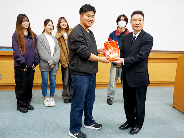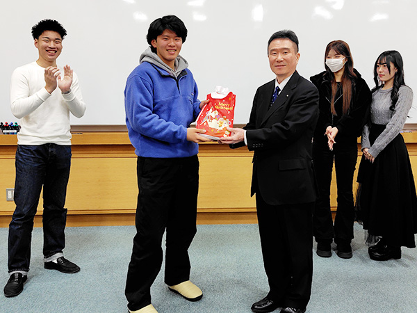このイベントに参加した全員で投票した結果、児童部子育て政策室の「子育て賞」にチーム「ラファエルエリアス」が、都市魅力部シティプロモーション推進室の「吹田クロス賞」にチーム「未来Cross」が選ばれ、後藤教育開発支援センター所長から記念品が贈られた〔2025年12月10日(水)〕。