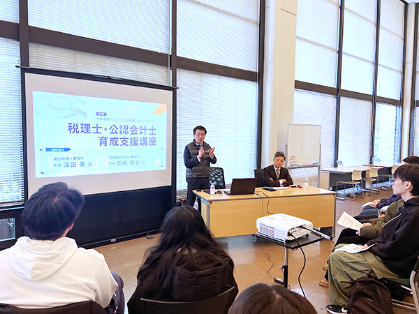 企業経営者や士業で活躍する卒業生が主な会員の大阪学院フェニックス倶楽部協力のもと、「税理士・公認会計士育成支援講座」を開催しました。〔2026年1月9日(金)参加者:17名〕