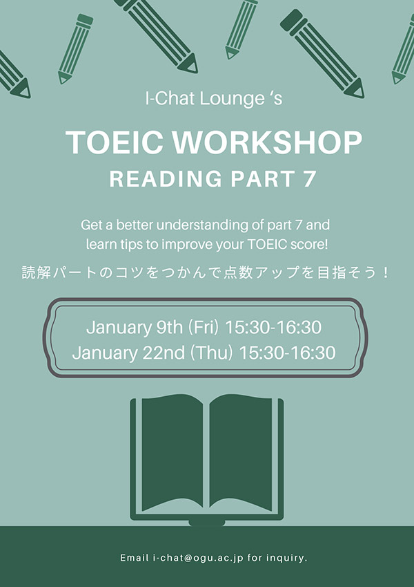 I-Chat Lounge's TOEIC Workshop in January will be focusing on Reading part 7.