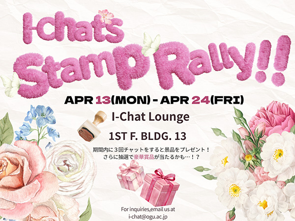 First, we are holding our I-Chat's Stamp Rally from April 13th to 24th.